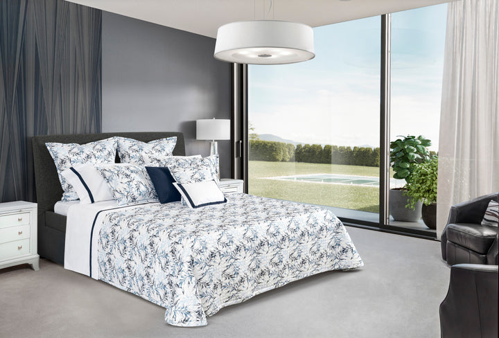 Experience our printed Natura watercolor coming to life on our finest, 100% extra long-staple, cotton sateen encasing a layer of warm polyester 80 gm/sqm and overstitched with a contemporary and timeless 1x1" square design.